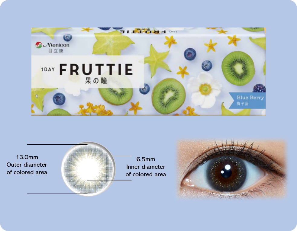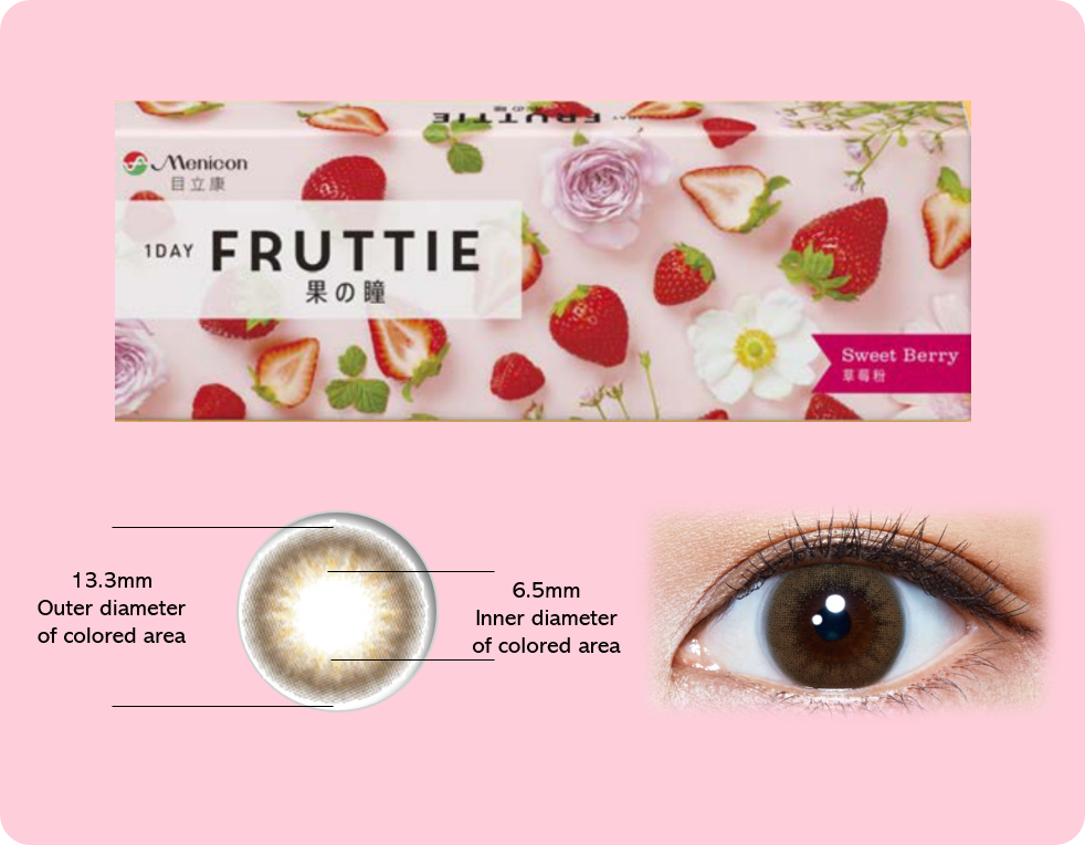 FRUTTIE gently fits to your eyes, bringing you a soft and comfortable wearing experience due to its high water content material (58% water content).