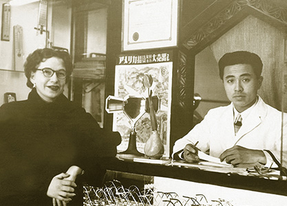 In 1950, 19-year old Kyoichi Tanaka was employed at Tamamizuya optical shop and first heard of contact lenses from the wife of a U.S. Army officer.